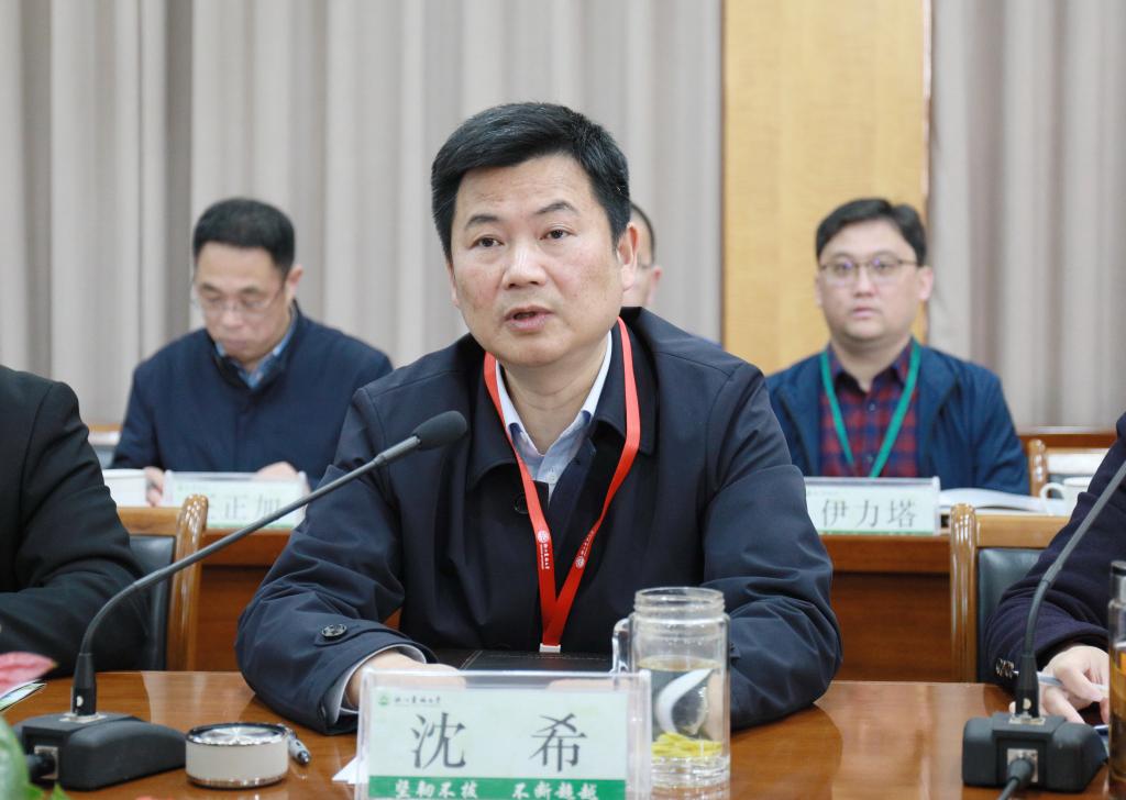 在3月22日上午举行的见面会上,沈希简要介绍了我校基本情况、办学成就。沈希指出,浙江农林大学位于杭州城西科创大走廊西端,正着力打造“环农林大创新圈”。一直以来,学校坚持立足浙江、服务三农,担当强农兴农光荣使命,积极创新实践“一根科技竹、两颗富民果、三幅美丽图、百名科技特派员”的科技强农富民模式,引导师生将论文“写在农民致富奔小康的大地上”,为浙江农业农村现代化和乡村振兴示范省建设贡献“浙农林方案”。